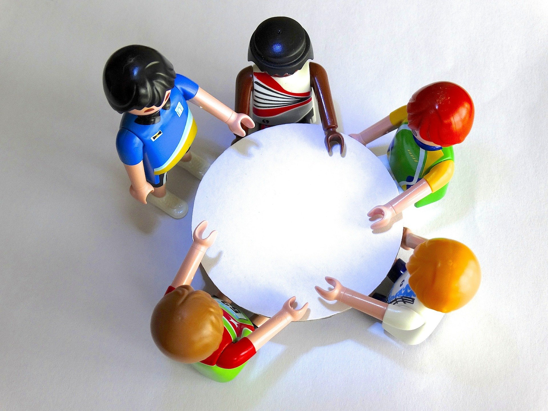 모서리가 없는 둥근 테이블에 둘러앉아